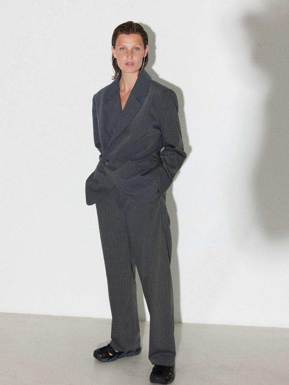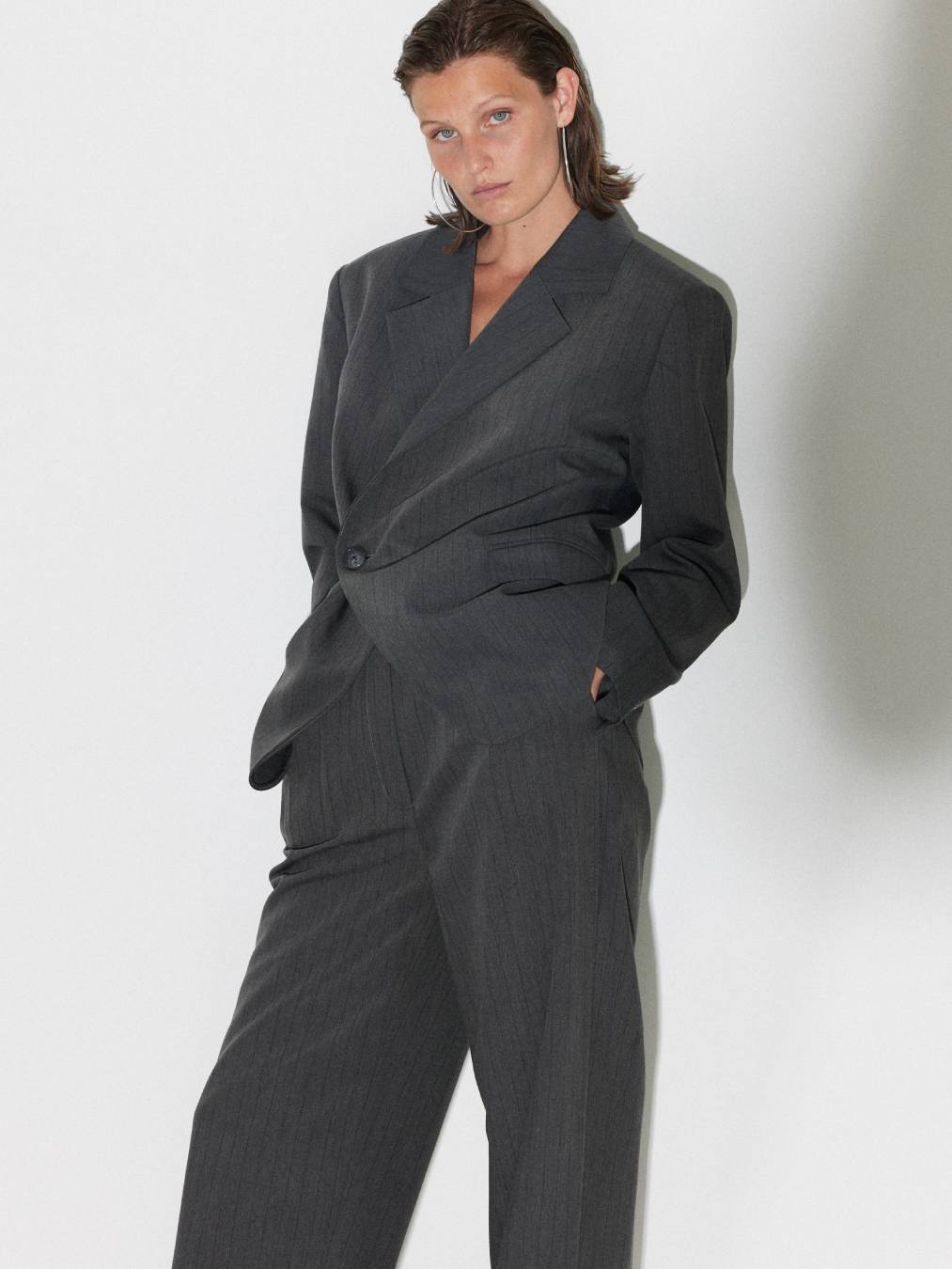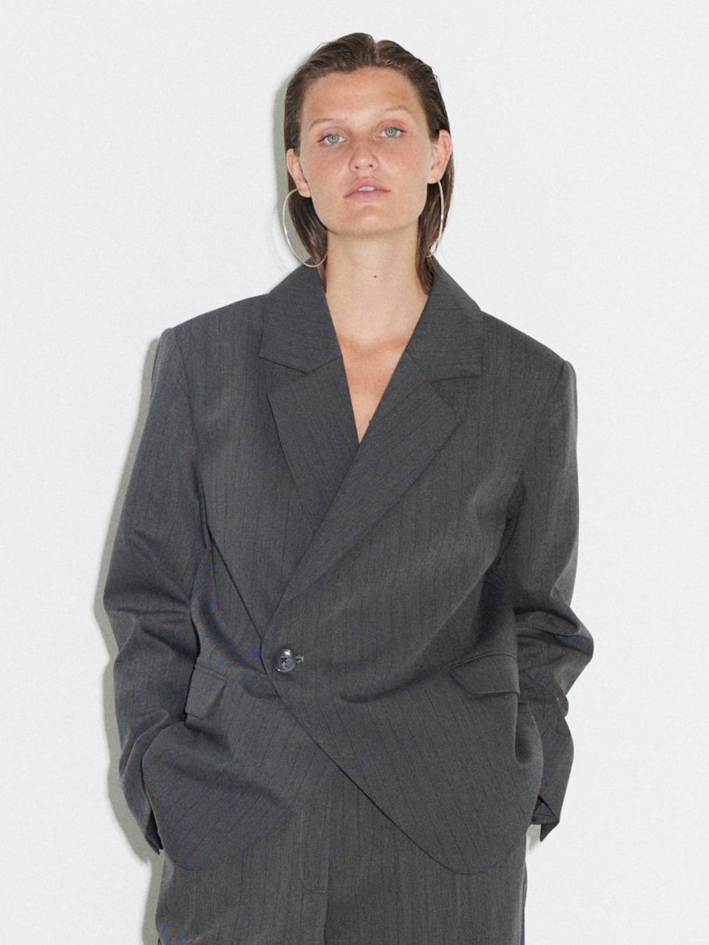 Noor blazer is the ideal suit blazer with an oversized fit. It is perfect for an everyday look and can easily be dressed up for a more formal occasion. The pinstripe pattern is a timeless classic, and the deep cut-out gives it a sexy silhouette. Complete the sophisticated look by pairing them with our Noor pants.